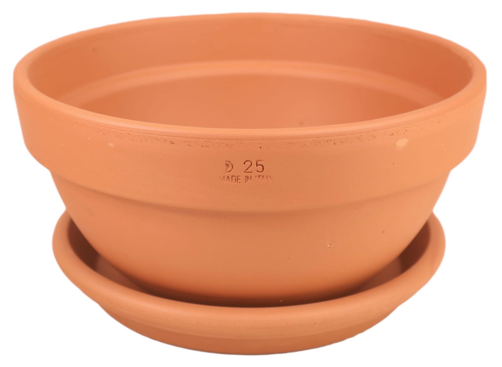Doskonałej jakości włoska glina zapewnia wyjątkową trwałość i estetykę doniczki.